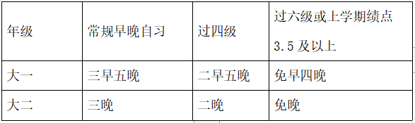 5.学期初各班统计学生绩点及考级情况,并确定早晚自习时间及地点,一学期内不可变等。