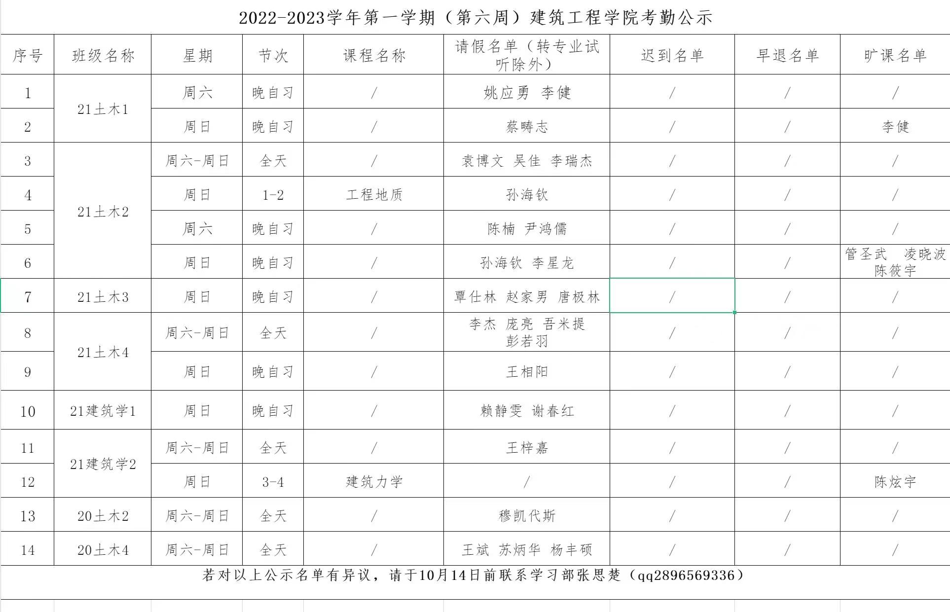 2022-2023学年第一学期(第六周)国产女同 考勤公示