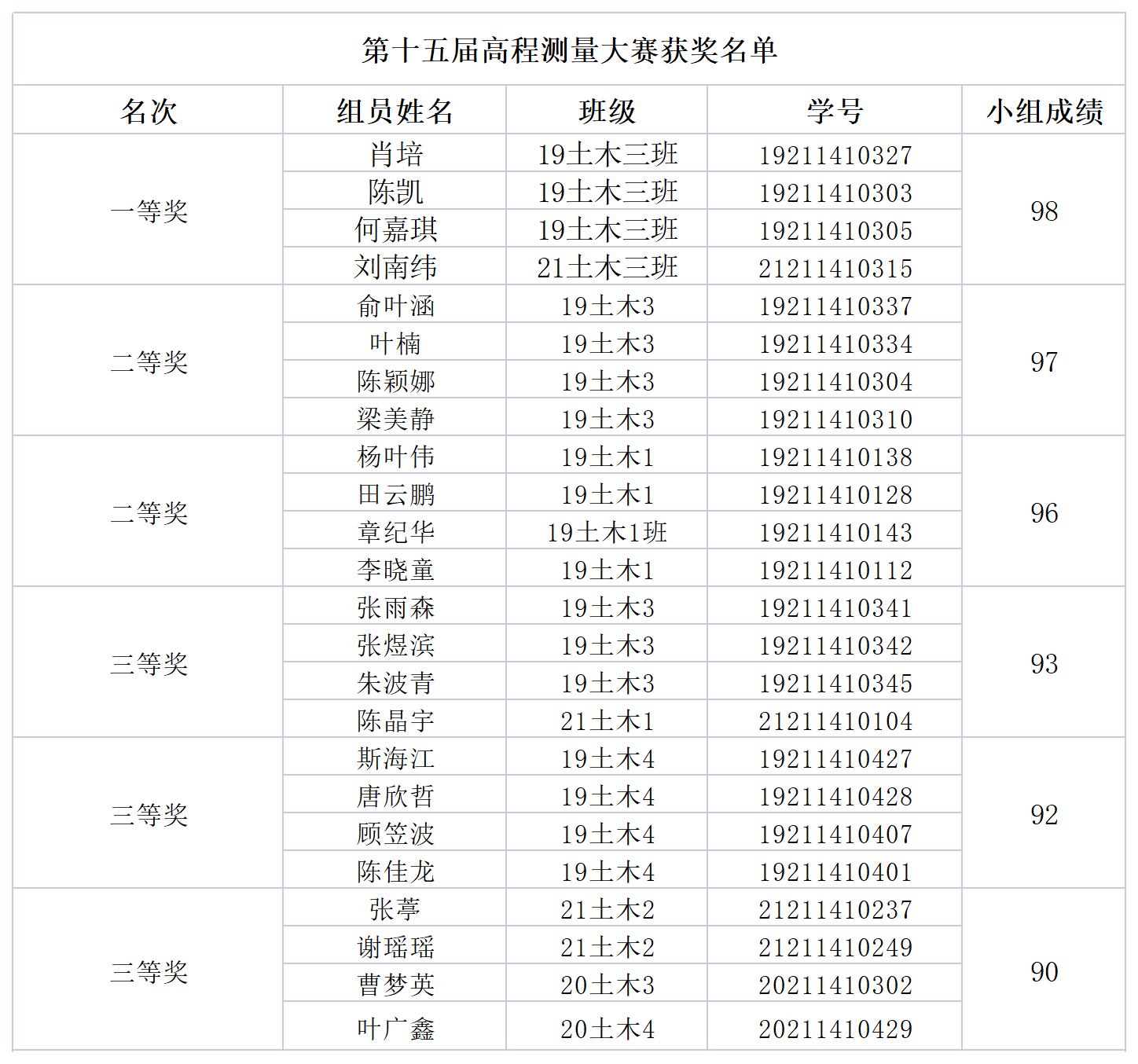 第十五届高程测量技术大赛落下帷幕,从赛前培训、正式比赛到评委打分,获奖结果已产生。现将获奖名单予以公示: