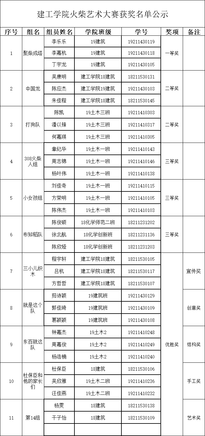 2019-2020学年国产女同未来建筑师之家第十二届火柴艺术大赛经过评委打分、现场投票、网上投票三阶段结果已产生。现将获奖名单予以公示(详情请见附件)。