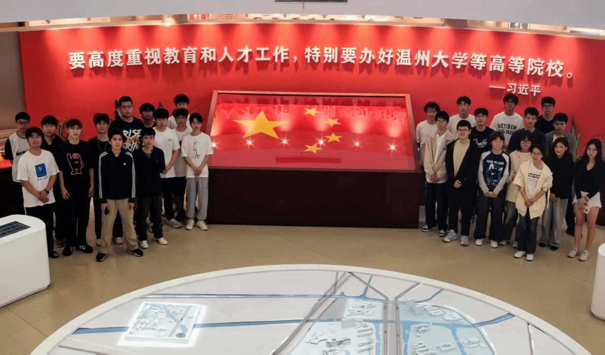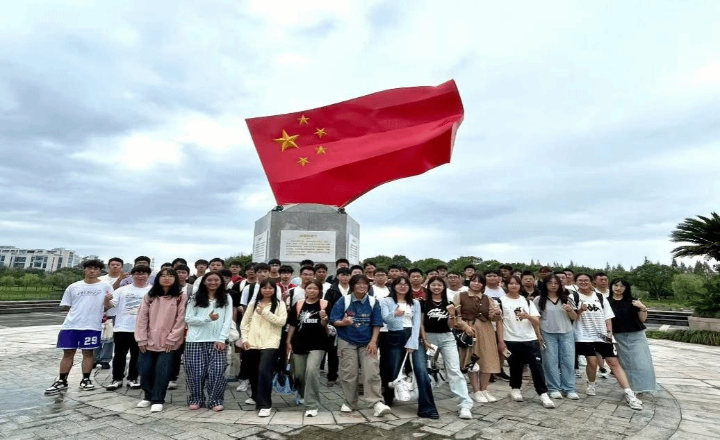 此外,部分团支部则前往校史馆参观,重点围绕那面意义非凡的天安门国旗展开学习。在讲解员的引导下,同学们凝视着曾在天安门上空飘扬的国旗,聆听其背后的故事,深刻感受到国旗所蕴含的庄重与神圣。参观后,同学们在校史馆前合影留念,那面国旗成为背景中最耀眼的存在,激励着每一位学子铭记历史,传承爱国精神。