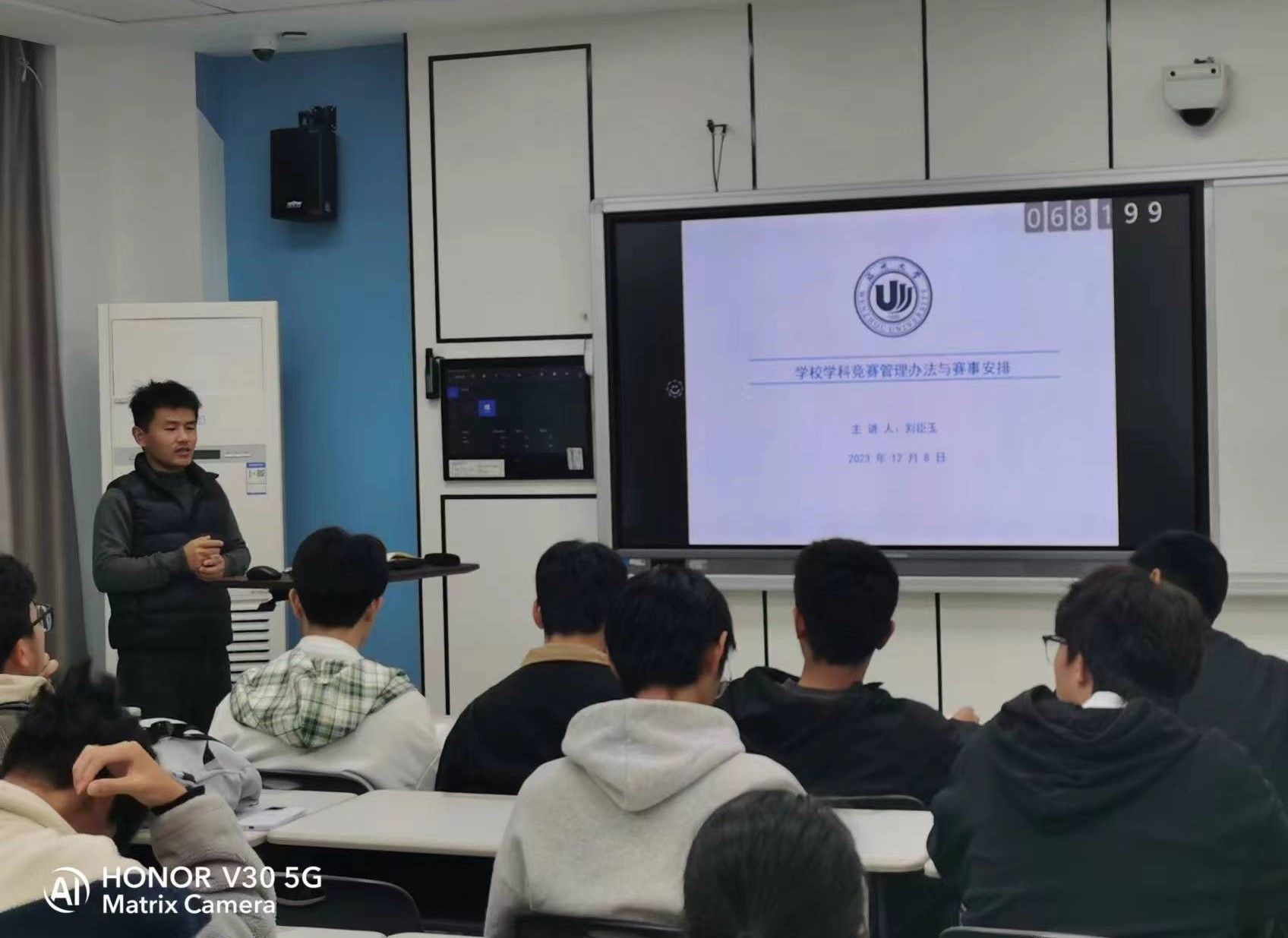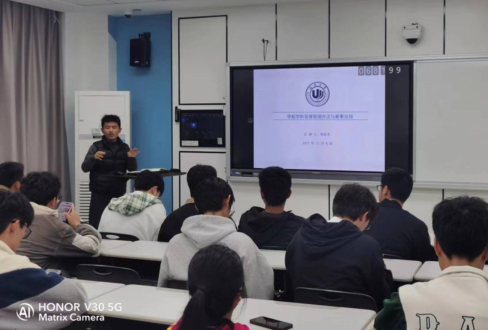 学生相关度大的竞赛和科研项目的时间安排、参加要求以及奖励政策。授课中,刘老师还跟大家分享了参加学科竞赛对个人成长、成才的长远意义,鼓励大家积极申报、早做计划、敢闯敢试,敢为人先。