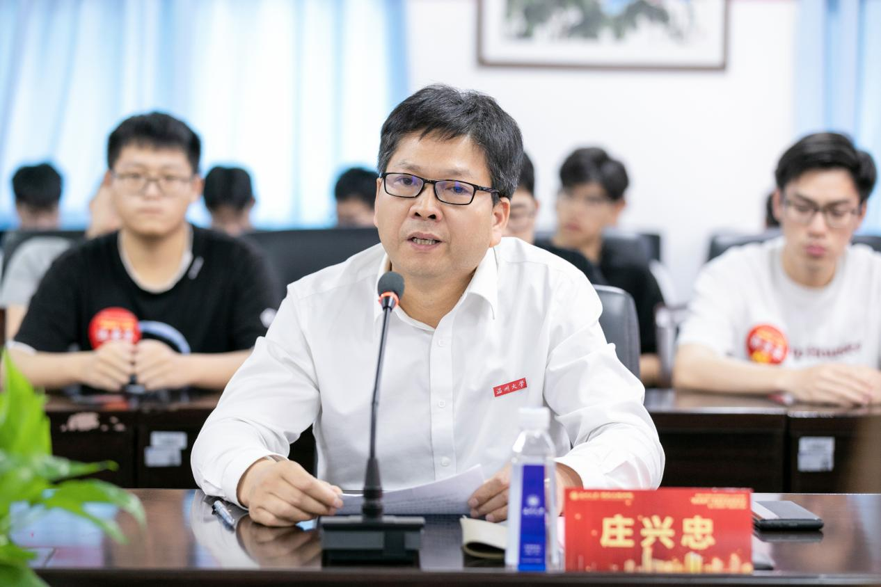 庄兴忠副书记致辞。他充分赞扬与肯定了蒋维清校友的爱校情怀。自2007年蒋先生设立“南龙房开”奖助学金起至今,已资助学生达912名,共计350万。未来十年,蒋先生向“南龙房开”奖助学金、奖教金再次捐赠244万元,十年如一日的爱校爱院,这份情怀真是令人动容。2021年,蒋建设,榕亭书屋这一文化地标的落成给学校增色添彩,让每位师生能够在休闲时刻进入这个文化空间,感受思想碰撞的畅意,感受空间的美感。庄书记希望在座的教师和学生们能够秉承蒋校友的爱校情怀,在共同努力下让学院在发展道路上取得好的结果。同时,庄书记也希望蒋先生的事业越来越好。