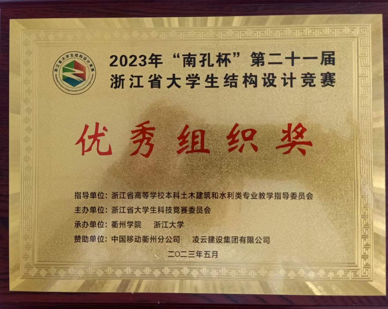 5月14日,2023年“南孔杯”第二十一届浙江省大学生结构设计竞赛在衢州学院落下帷幕,我校荣获一等奖、三等奖各1项,并再度荣获“优秀组织奖”。本次省赛本科组共有30所高校62支队伍参赛角逐,一等奖共10名,我校秦伟(第一指导老师)、孙毅龙(第二指导老师)指导的“定风波”队(队长赵前辉,队员应伟杰、孙少敏)制作的自行式塔吊作品成绩排名位列全省第三,有望代表浙江省参加国赛。