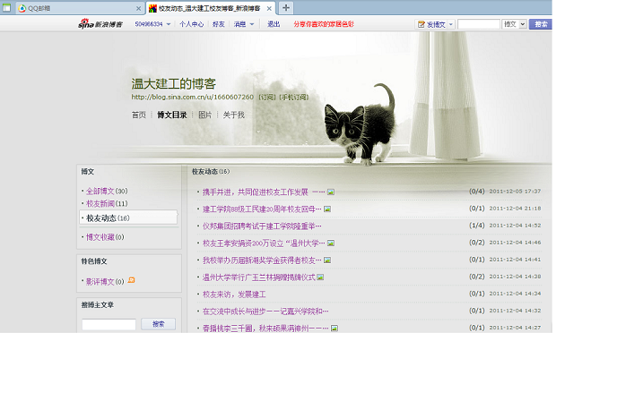 为了便于校友与国产女同 之间的联络,国产女同于12月份开通新浪博客。本次博客的开通得到学院老师和校友的大力支持与赞扬。