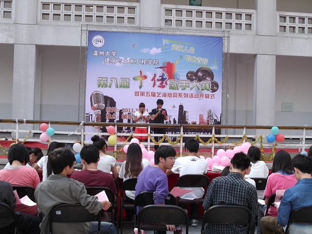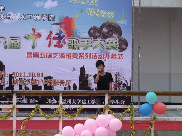 本次大赛的主题为“建筑人生,唱响青春”。在团委学生会的精心筹备下,现场氛围异常火爆,各选手充满激情的演唱,赢得在场观众和评委的阵阵喝彩,并吸引了众多学院的围观,欢呼声、掌声、呐喊声…使全场的气氛达到最高潮。经过公平的评选,最终选出了入围的十六强参加“十佳歌手”的总决赛。