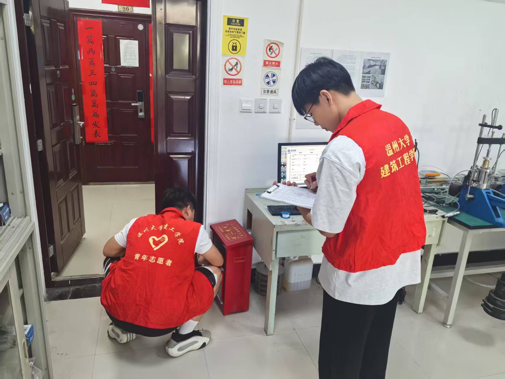 6月6日,实验中心崔启文老师带队研究生生活实践部巡查成员,对学院二级实验室开展安全检查。在检查过程中,检查人员仔细查看消防器材是否配备齐全且在有效期内,安全通道是否畅通无堵塞,电气线路是否存在老化、私拉乱接现象等设施情况。同时,重点检查危化品存储、特种设备使用等易产生安全隐患的重点部位。巡查小组成员对排查出的隐患逐一记录,事后给相关实验室信息员发送整改通知书,要求其在规定时间内进行整改,持续深入开展隐患自查自纠,严格规范安全制度执行,坚决防范安全事故发生。